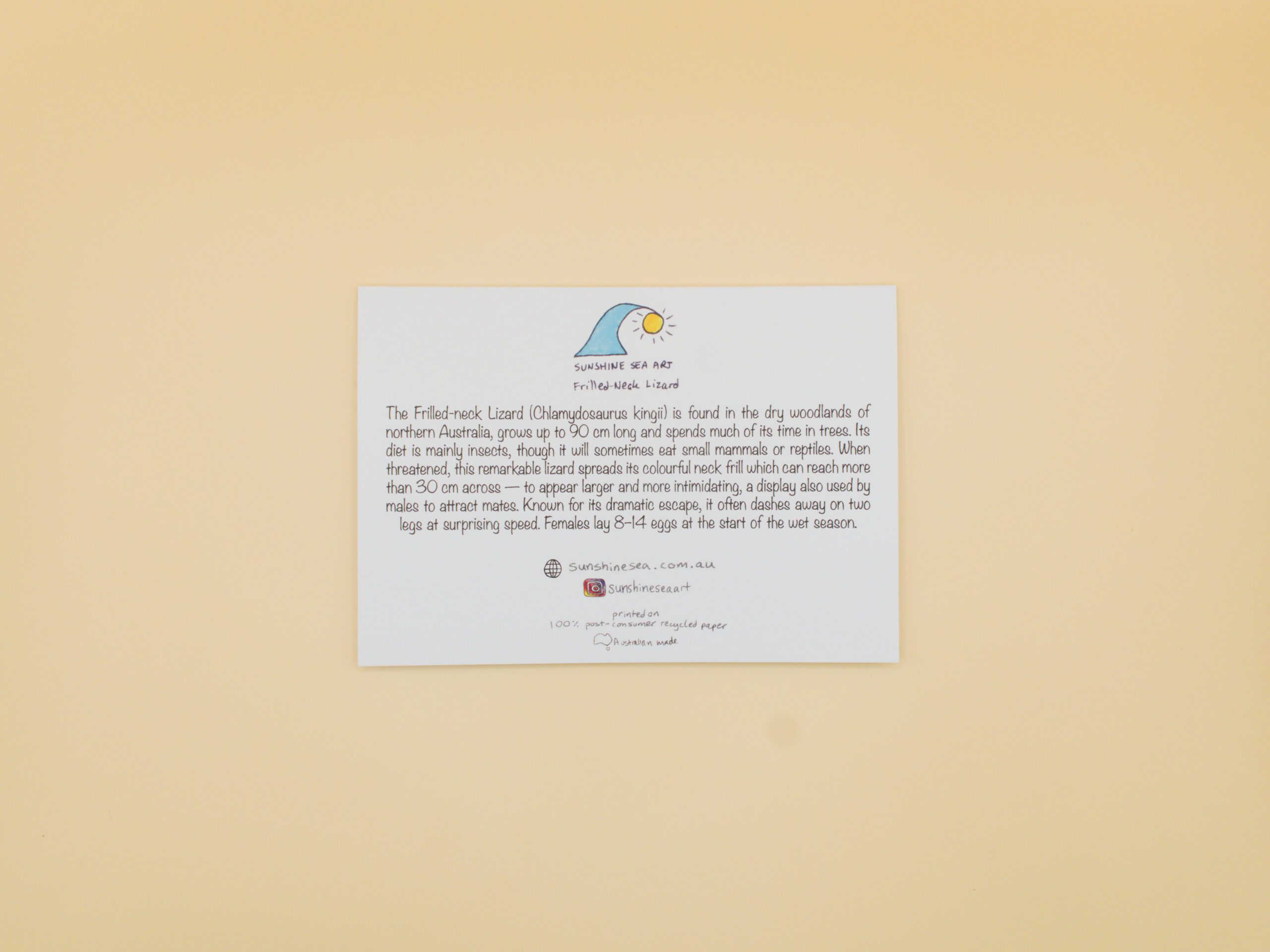 Bring a smile to your loved ones face with these unique designs of Australian flora and fauna. Proudly designed and printed entirely in Australia, on 300gsm uncoated high-quality paper which gives a soft, white look. The paper is 100% post-consumer recycled, and each A6 (105 x 148.5mm) card comes with a recycled paper brown envelope.